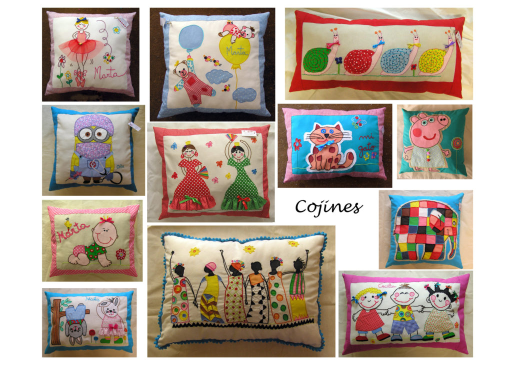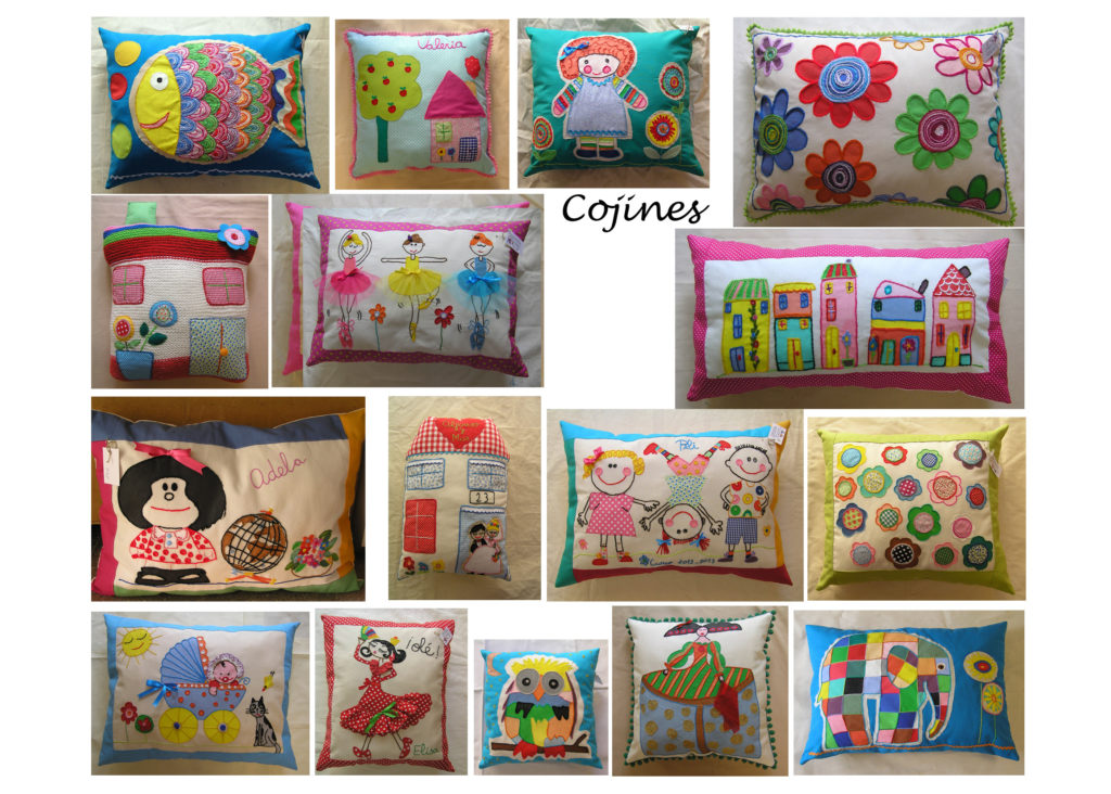 Cojines Cojines Inicio » Catálogo » Cojines Cojines pintados y bordados a mano. Taller de artesanía y diseño. Descripción Cojines con diferentes diseños, personalizados. volver a la lista