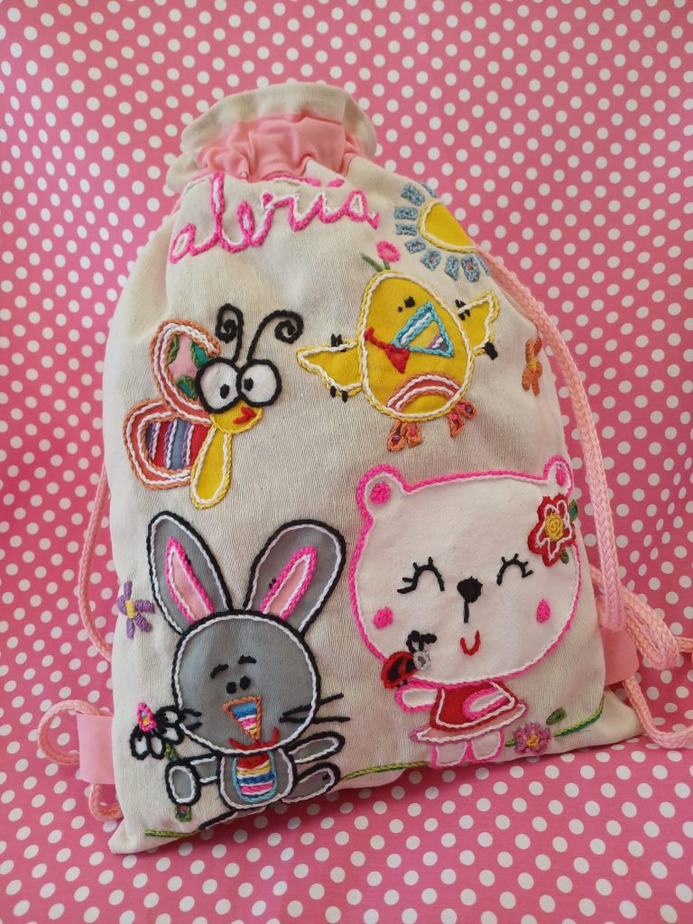 Mochilas hechas, pintadas bordadas y cosidas a mano.